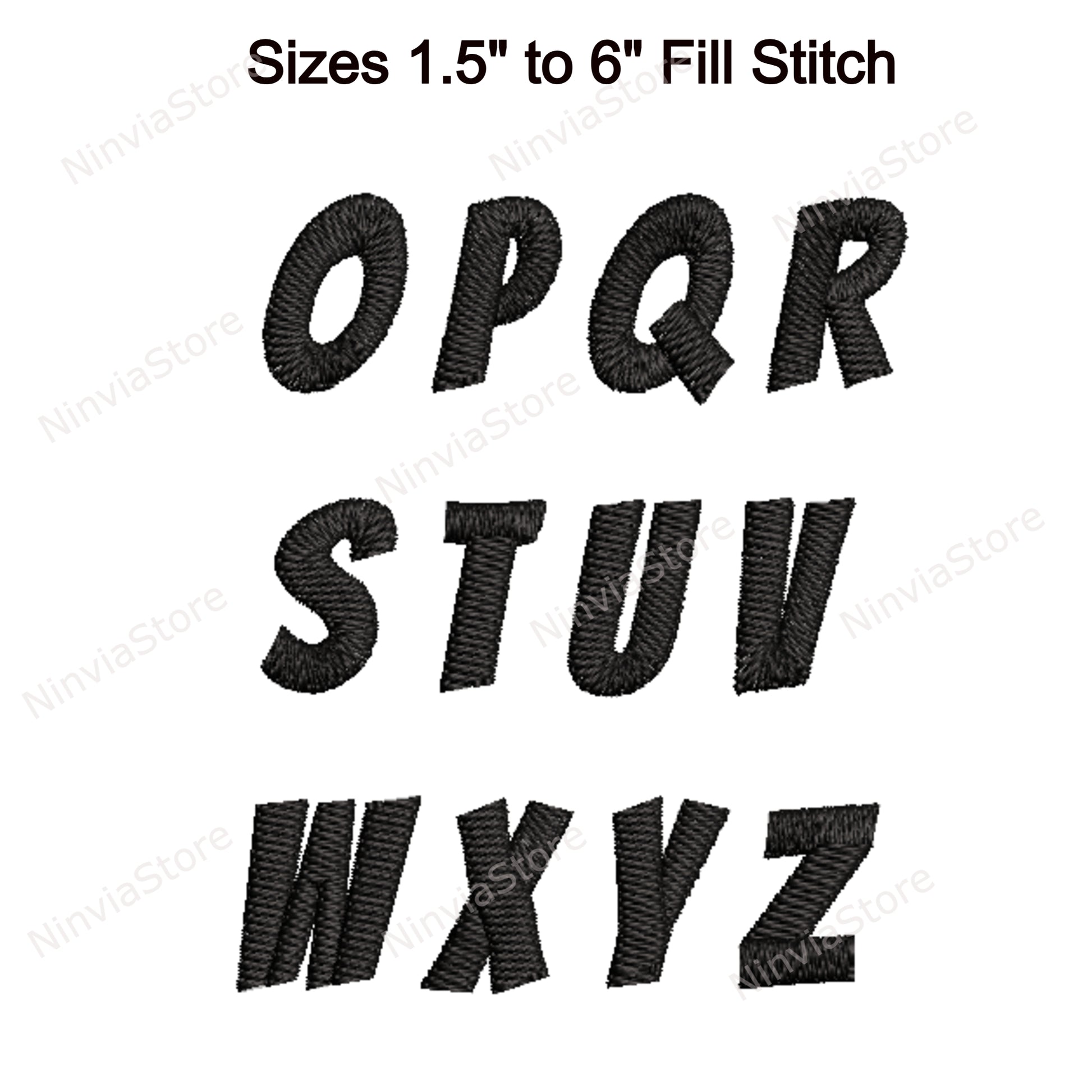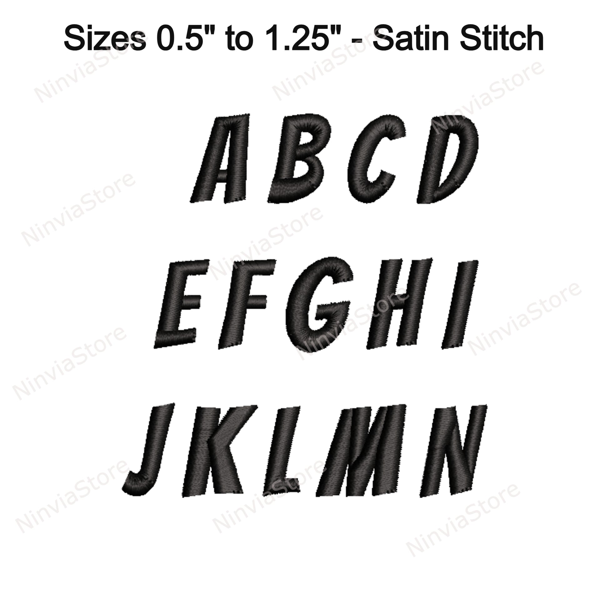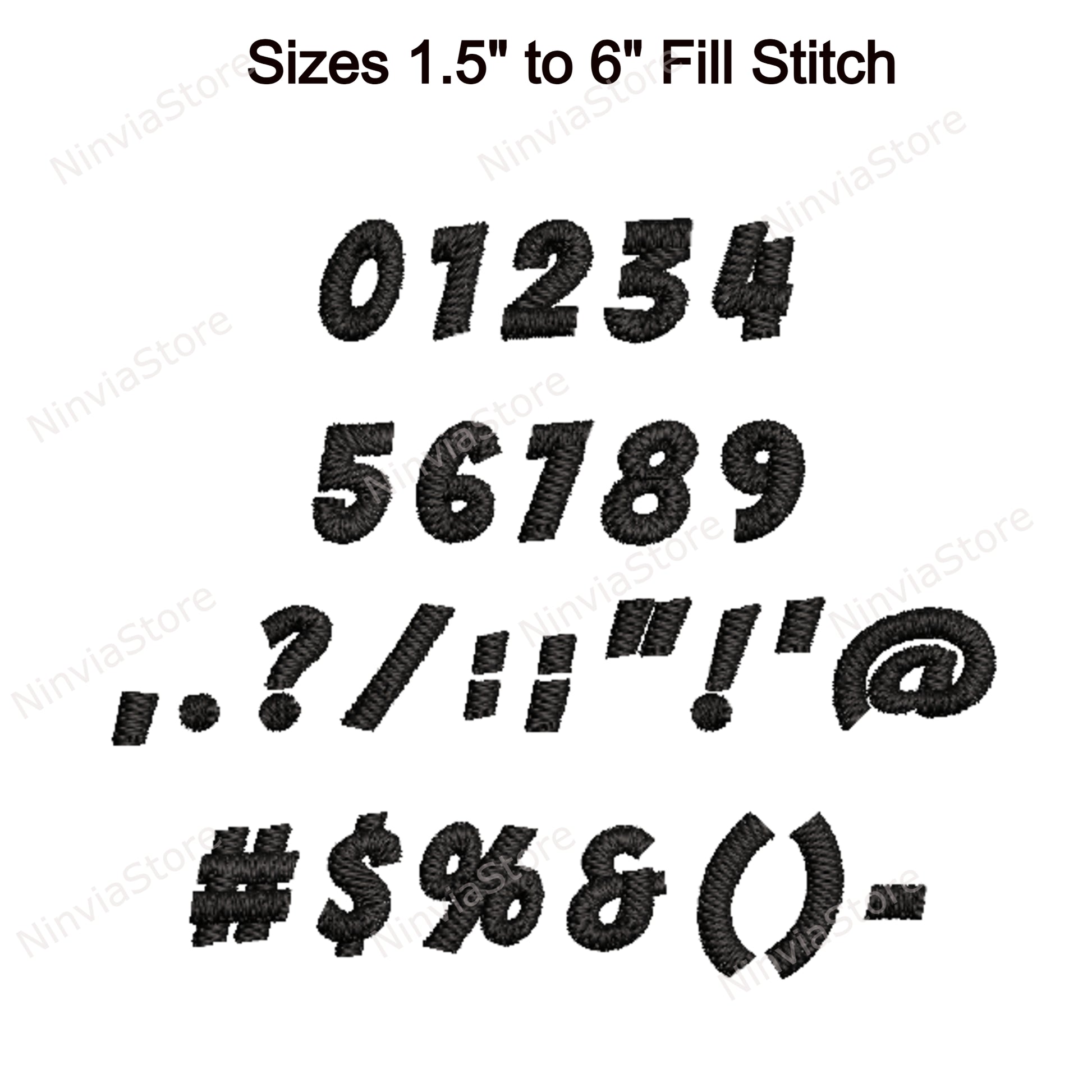 Diese Schriftart im BX-Format und in Maschinenformaten (pes, dst, exp, jef, hus, seen, vp3, vip, xxx) ist in 15 Größen erhältlich: