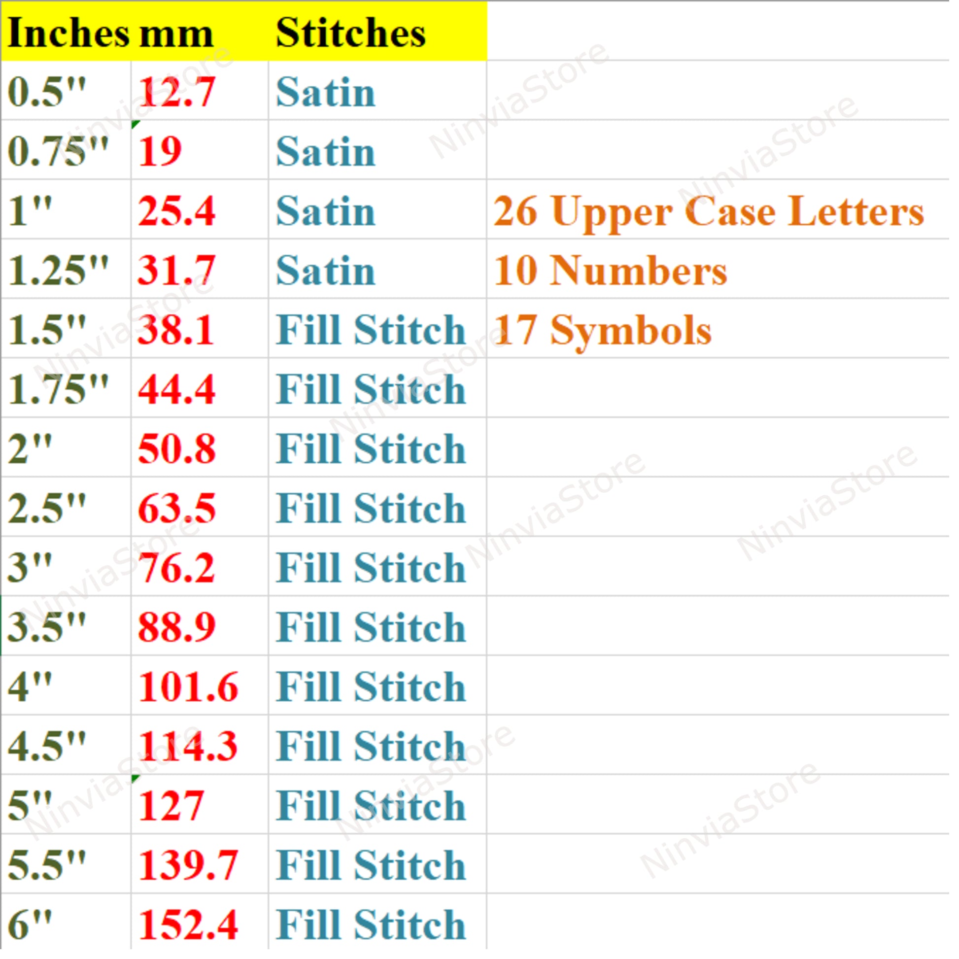 Der Sofort-Download umfasst nur die folgenden Größen und Formate. Bitte bestätigen Sie vor dem Kauf, dass die Größen und Formate mit Ihrer Maschine kompatibel sind.