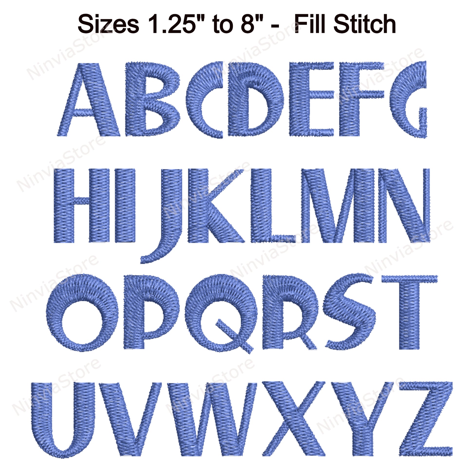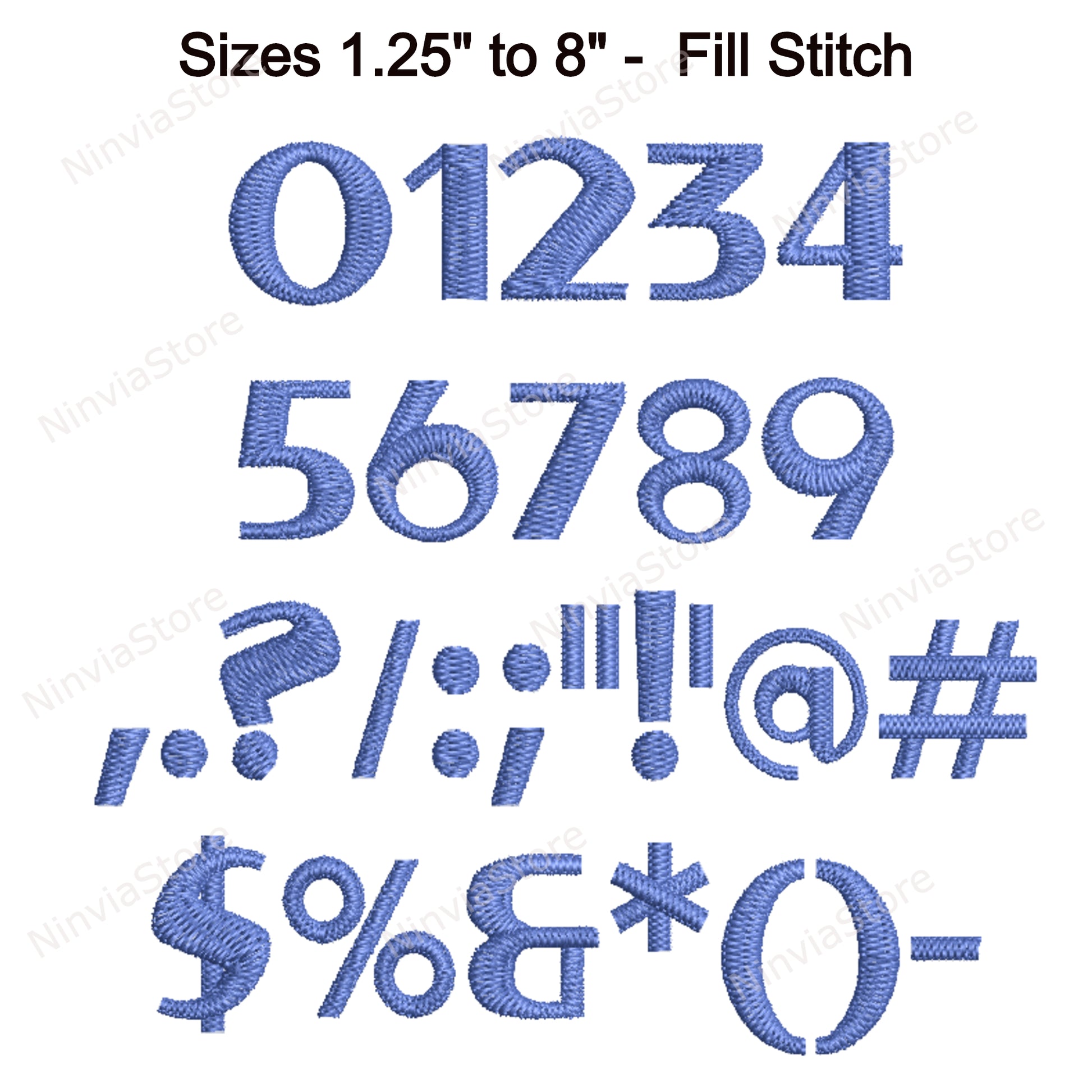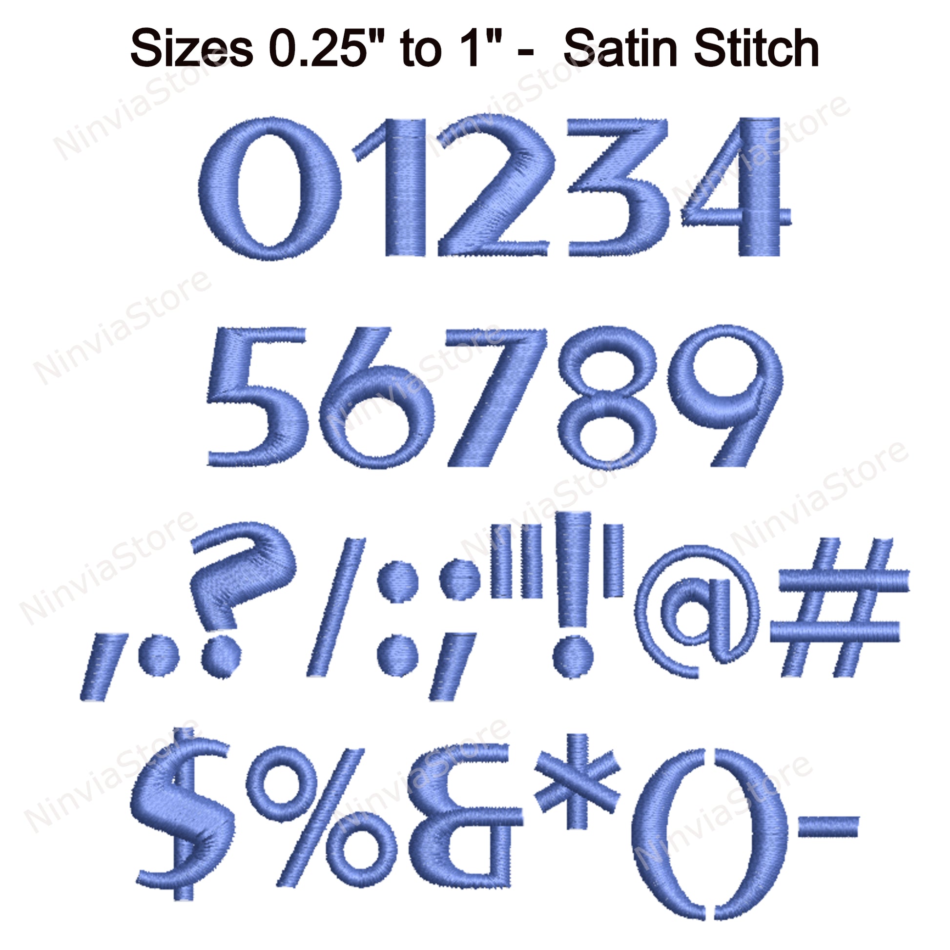 Diese Schriftart im BX-Format und in Maschinenformaten (pes, dst, exp, jef, hus, seen, vp3, vip, xxx) ist in 15 Größen erhältlich: