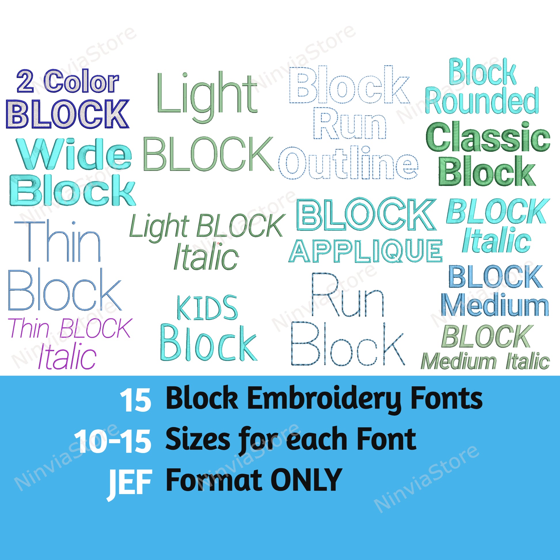 15 JEF Block Embroidery Fonts Bundle, Machine Embroidery Font JEF, Alphabet Embroidery Design, JEF font for Embroidery, Machine Embroidery Monogram Font